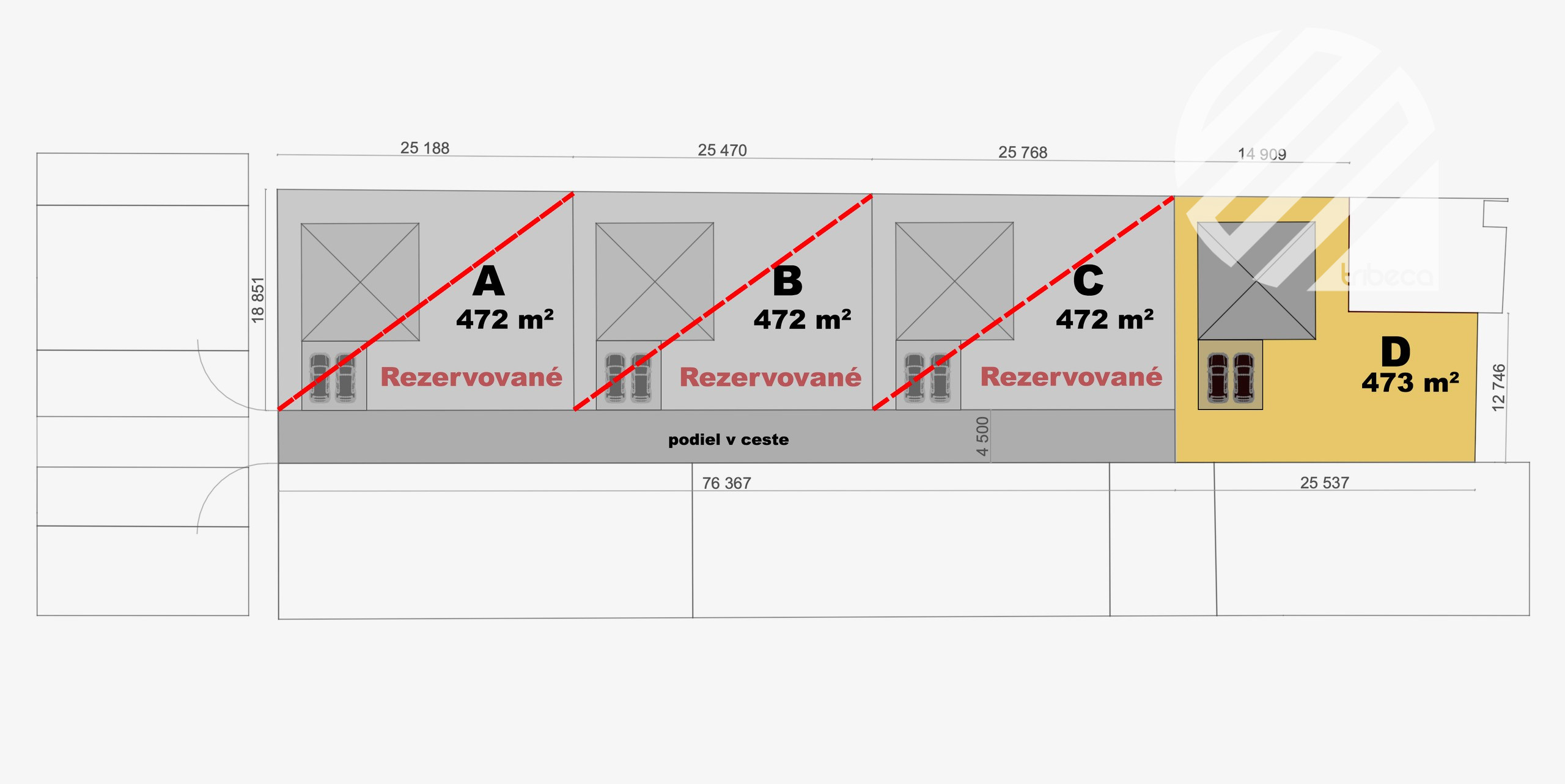 - Výmera: 473 m² + 86 m² podiel v súkromnej prístupovej ceste