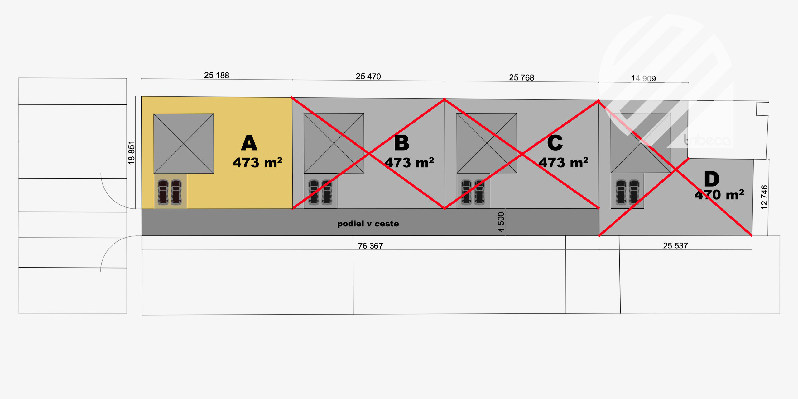- Výmera: 473 m² + podiel v súkromnej prístupovej ceste