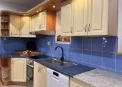 Na prízemí sa nachádza priestranná obývacia izba, plne vybavená kuchyňa, kúpeľňa s vaňou a WC, špajza a vstup do pivnice. Dom je podpivničený na ploche 27 m2.